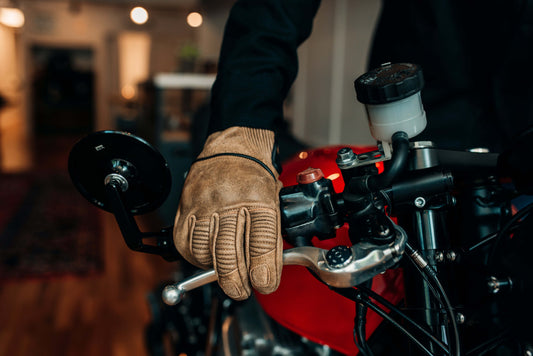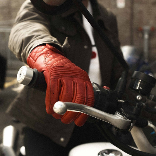 Cafe Quilted Leather Motorcycle Gloves - Red