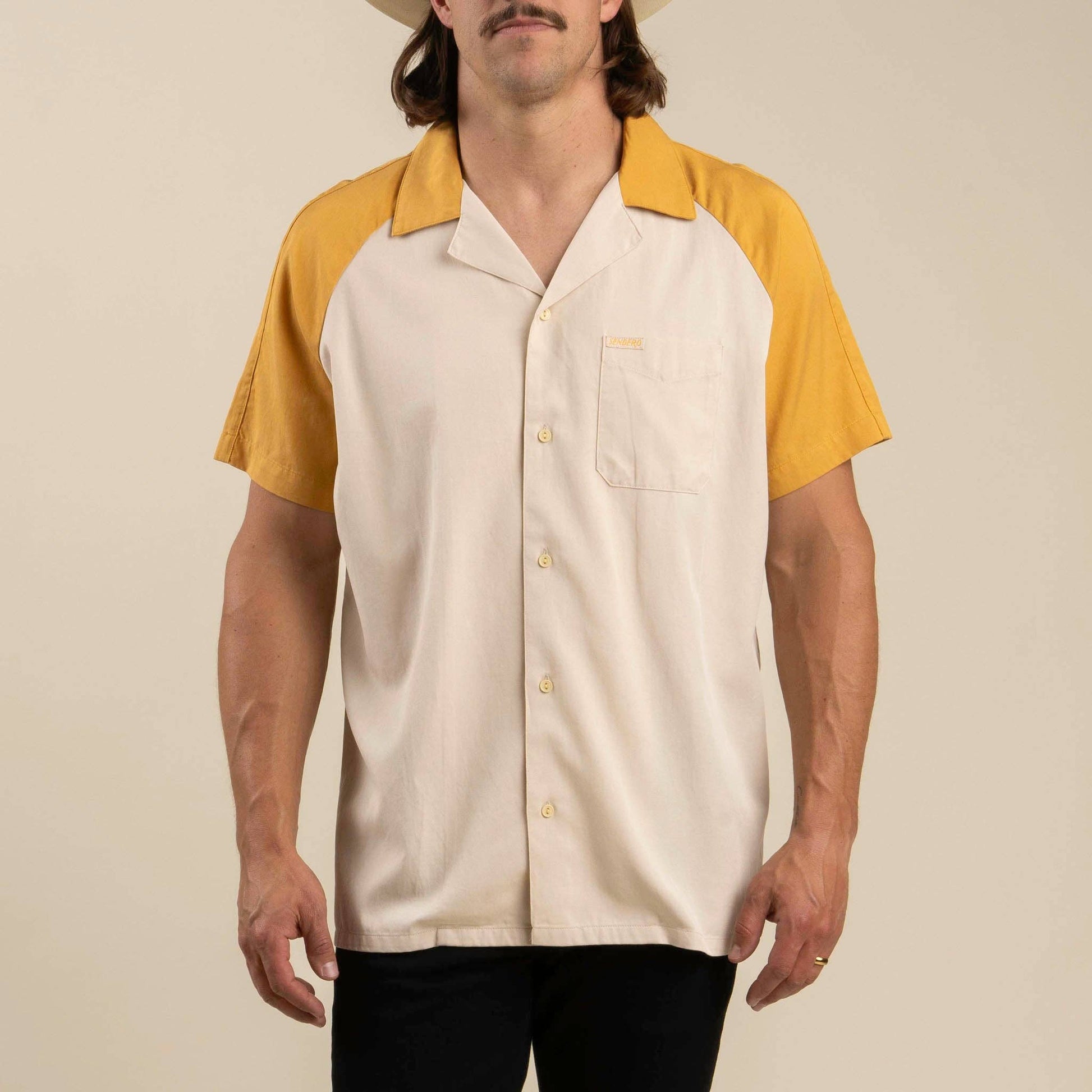 Not too boxy, not too tight, and definitely not one of those shirts that makes you look like an extra in a low-budget rockabilly band. This two-tone classic has just the right amount of vintage without feelin’ like a costume. Soft, breathable, and built for whatever trouble you find yourself in, whether that’s runnin' the table at the dive or pretendin’ you know how to two-step. Looks like a thrift store gem, fits like it was made just for you, a little bit of "how it used to be."