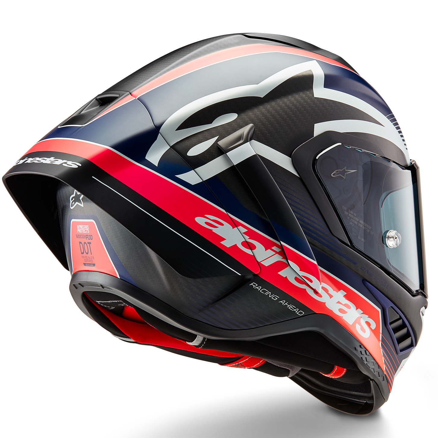 The result of over 10 years of intensive study, development, and testing, the goal of the Supertech family of helmets is to create the most advanced, protective, and performance-enhancing helmets possible for racers and riders worldwide. Following years of extensive research, development, and testing of the Supertech R10 road racing helmet by Alpinestars’ Helmet Product Development Department, together with MotoGP legend Andrea Dovizioso, and MotoGP riders’ Jorge Martin, and Jack Miller. With the S-R10, the focus of the design was to ensure the highest level of performance, especially when it comes to protection and a new level of safety. The S-R10 Helmet has been engineered to provide the perfect blend of excellent ventilation, unsurpassed comfort, and the lightest weight possible without compromising on any other front. Another crucial element unique to the S-R10’s design and development is the helmet’s advanced aerodynamics, with countless sessions in the wind tunnel aimed at reducing drag and providing optimal aerodynamic stability.